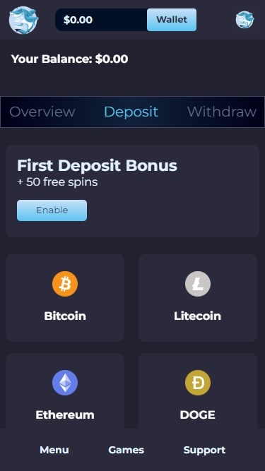 它配備了由一些最受尊敬的 iGaming 公司製作的大型遊戲集合,包括頂級加密賭場遊戲,例如:Aviator、Dice、Plinko、Mines、HiLo、Mini Roulette、Keno、Goal 等。