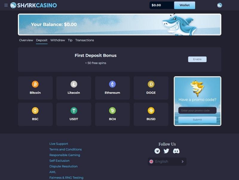 Shark Casino 是一個僅使用加密貨幣的線上賭場,在這個遊戲場所,玩家可以使用各種流行的加密貨幣進行存款和提款,並且可以立即處理一定金額以下的資金。