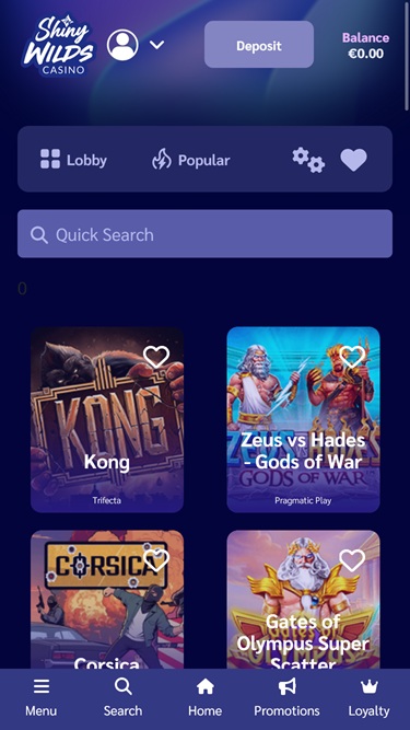 Shiny Wilds Casino 的所有遊戲均經過全面優化,可在行動和桌上型平台上流暢運作。無論您是使用智慧型手機隨時隨地暢玩遊戲,還是在家中使用筆記型電腦或桌上型電腦,都能享受流暢的遊戲體驗、精雕細琢的出色畫面、用戶友好的導航等等。乍一看,這家賭場很容易成為賭徒的最愛,我們迫不及待地想深入了解它的產品!