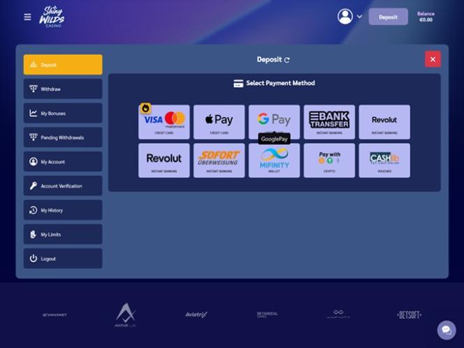 Shiny Wilds Casino 與 iGaming 行業中一些最負盛名的公司合作,致力於為會員提供頂級的遊戲體驗。除了Pragmatic Play、Microgaming 和 NetEnt等知名公司以及眾多其他知名公司外,各種小型線上賭場軟體工作室也為該品牌貢獻內容,進一步豐富了賭場的多元化遊戲選擇。