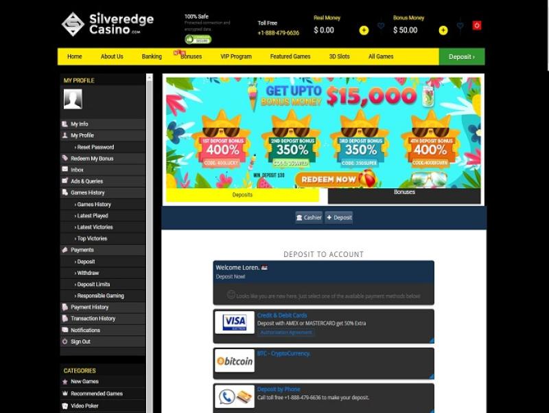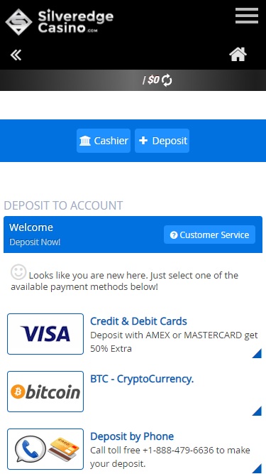 Silveredge 賭場由 BetSoft, Rival, Saucify and Dragon Gaming提供支持,並提供該開發商的全套遊戲。除了桌上遊戲外,賭場還支援行動遊戲,可透過智慧型手機或平板電腦暢玩。