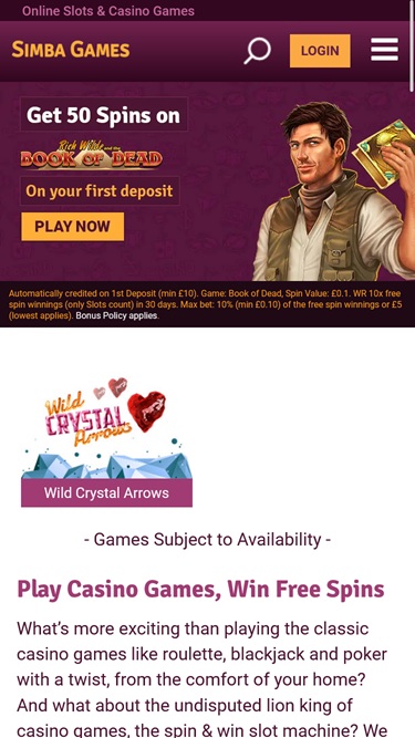 Simba Games 賭場是一家成立於 2014 年的線上博彩網站,擁有美觀的平台供玩家瀏覽。其主題以小型獅子會為主題,令人不禁聯想起某部迪士尼電影。賭場提供知名開發商的大量遊戲,以及豐厚的獎金條款和極快的賠付速度。所有這些,都讓 Simba Games 成為您值得一試的線上賭場。