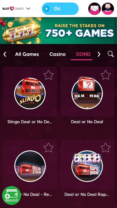 Slot Crazy Casino 由 Barcrest, EYECON, Pragmatic Play, Skillzzgaming, Triple Edge Studios, Northern Lights Gaming, Stormcraft Studios, All41 Studios, Gameburger Studios, Neon Valley Studios, SpinPlay Games, Wizard Games, Bally Technologies, Blueprint Gaming, NextGen, Pariplay, WMS, Inspired Gaming, Gaming Realms, SG Interactive, Scientific Games, Reel Time Gaming, Old Skool Studios, Slingshot Studios, Fortune Factory Studios, AGS Interactive, Alchemy Gaming, Half Pixel Studios and Aurum Signature Studios提供支持,其遊戲透過基於網路的平台和行動網站提供。其他遊戲