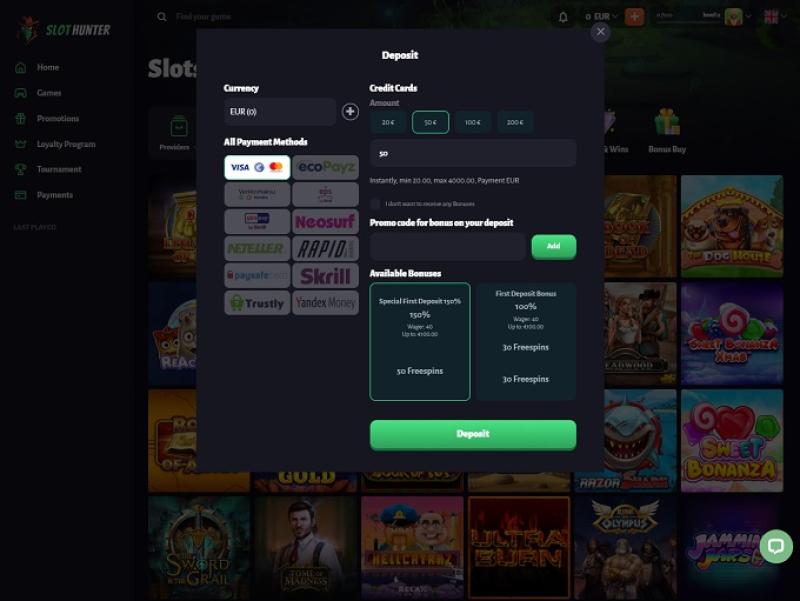 下面您將看到 Slot Hunter Casino 為賭客提供的不同銀行業務選項。