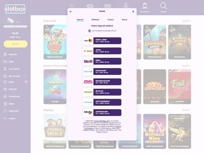 Slotbox 是一個線上賭場網站,由 Slotbox NV 擁有和經營,該公司根據庫拉索法律註冊成立,並由 Antillephone NV 授權和監管。