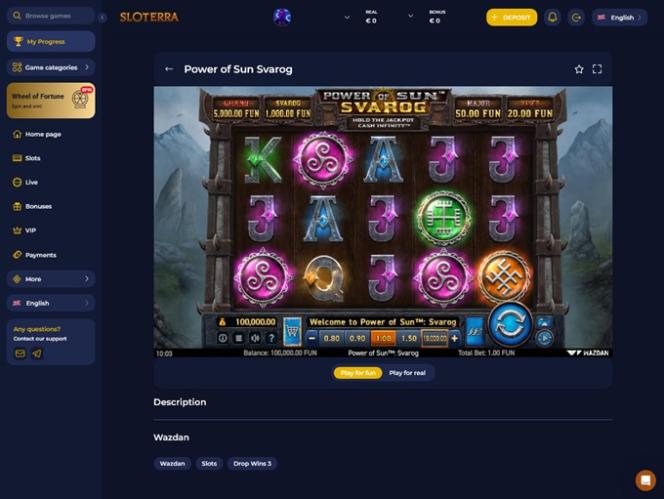 Sloterra Casino 與一些最受歡迎的軟體工作室合作。玩家將能夠探索由Microgaming 、Evolution Gaming、Wazdan、Quickspin 等優秀遊戲供應商以及其他經驗豐富的開發商設計和支援的賭場遊戲。