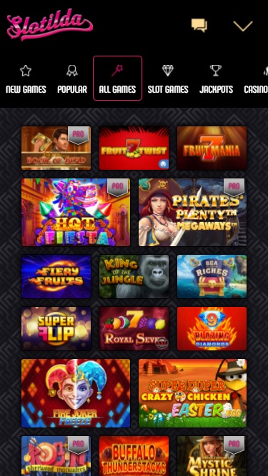 Slotilda 由 Microgaming, Net Entertainment, BetSoft, Amatic Industries, Big Time Gaming, Genesis Gaming, iSoftBet, lightningboxgames, Oryx, Play'n GO, Rabcat, Yggdrasil, Realistic Games, Pragmatic Play, Red Tiger Gaming, Skillzzgaming, Fantasma Games, Kalamba, Triple Edge Studios, Northern Lights Gaming, Stormcraft Studios, Dreamtech Gaming, All41 Studios, Gameburger Studios, Pulse 8 Studios, Neon Valley Studios, Golden Rock Studios, TrueLab Games, SpinPlay Games, GONG Gaming, Buck Stakes Entertainment, Games Global, 2by2 Gaming, Merkur Gaming, Gamomat, Old Skool Studios, Foxium, Just For The Win, Reflex Gaming, PearFiction Studios, Slingshot Studios, Fortune Factory Studios, 4ThePlayer, AvatarUX, Crazy Tooth Studio, ReelPlay, Alchemy Gaming, Plank Gaming, Snowborn Games, Max Win Gaming, Gold Coin Studios, Bang Bang Games, Half Pixel Studios and Peter And Sons提供支持,賭場平台可透過網頁即時遊戲平台存取。這意味著您可以透過網路瀏覽器存取賭場的整個平台。此外,Slotilda 還支援行動端遊戲,玩家可以透過智慧型手機和平板電腦進行投注。
