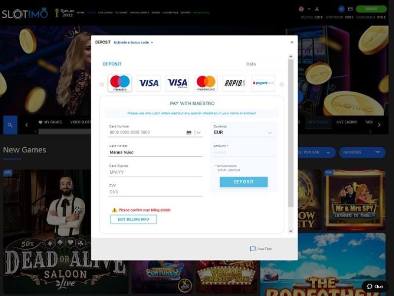 Slotimo Casino 提供多種流行的付款方式,玩家可以選擇一些有吸引力的加密貨幣選項,或者他們可以選擇傳統的線上付款方式,例如借記卡和信用卡、直接轉帳和電子錢包。