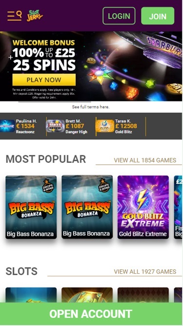 此外,玩家還可以透過行動裝置存取所有遊戲和功能。該網站針對安卓和 iOS 裝置進行了全面優化,並且不會因此而影響遊戲品質。您無需下載任何單獨的應用程式即可開始遊戲。您只需要一個行動瀏覽器和一個 Slotjerry Casino 帳戶。