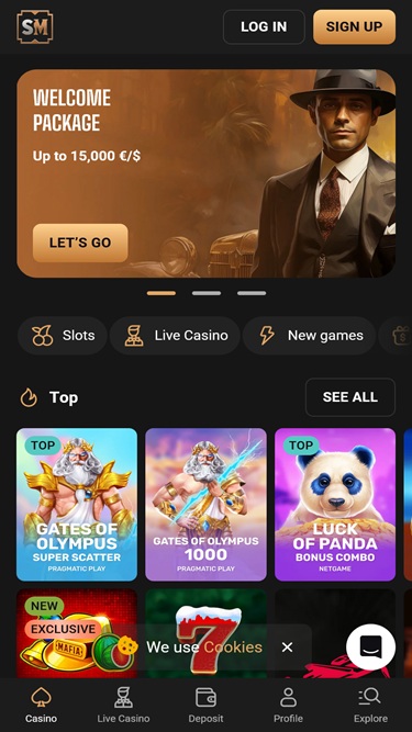 賭場網站一上來就以簡潔友善的使用者介面迎接您。首頁會展示各種優惠和促銷活動。您還可以使用選單輕鬆瀏覽不同的類別,例如老虎機、真人娛樂場、新遊戲、購買獎金、即時獲勝、累積獎金、Megaways、Hold & Win、桌上遊戲、彩票等等!