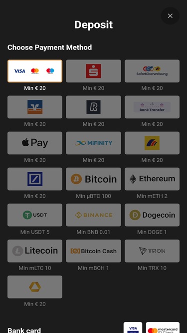 在存款和提款的支付方式方面,您可以放心,一定能找到適合自己的選擇。無論您是喜歡Visa和MasterCard等值得信賴的付款方式,還是Skrill和Neteller等電子錢包,甚至是加密貨幣愛好者,您都會驚訝地發現這裡有很多選擇。
