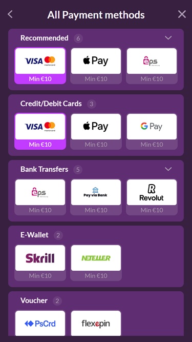 該平台提供全球頂級銀行方式的存款和提款服務,包括 Apple Pay、銀行電匯、Google Pay、Interac、NETELLER、Rapid Transfer、Revolut、Ripple、Skrill、支付卡和其他網路銀行系統 …