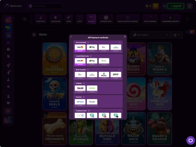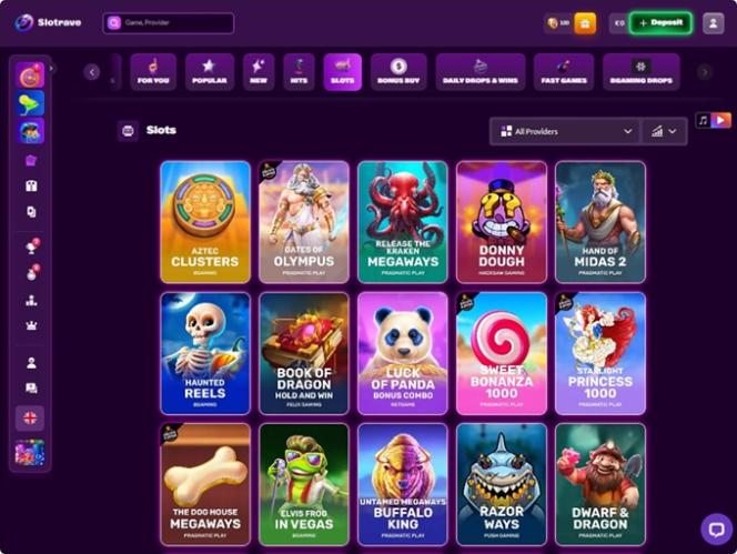 如果您偏好擁有豐富遊戲庫的線上賭場,Slotrave 將是您探索由業內一些最知名軟體公司 打造的線上博彩內容的理想之選。該運營商與 Microgaming , Net Entertainment , Playtech , BetSoft , 1x2gaming , Amatic Industries , Big Time Gaming , Evolution Gaming , EYECON , Ezugi , Habanero Systems , Play'n GO , playson , Quickspin , Thunderkick , Vivo Gaming , Yggdrasil , Endorphina , Wazdan , GameArt , Betgames , Booming Games , Pragmatic Play , Nolimit City , Red Tiger Gaming , Booongo , LuckyStreak , Spinomenal , Felix Gaming , Fugaso , Belatra Games , Fantasma Games , Revolver Gaming , Platipus Gaming , Nucleus Gaming , Skywind , Spadegaming , BGAMING , Evoplay , OneTouch , Electric Elephant Games , Pocket Games Soft , Bulletproof Games , Mascot Gaming , Slot Factory , Spearhead Studios , Swintt , TrueLab Games , Mancala Gaming , Expanse Studios , HungryBear Gaming , SmartSoft Gaming , KA Gaming , Caleta Gaming , Games Global , Reevo , CT Interactive , Igrosoft, Push Gaming, Tom Horn Gaming, RFranco Group, BF Games, Iron Dog Studio, Reflex Gaming, Wild Streak Gaming, RubyPlay, 4ThePlayer, AvatarUX, Groove Gaming, ReelPlay, SlotVision, Indi Slots, Boomerang Studios, Hacksaw Gaming, Max Win Gaming, Bang Bang Games, Gamzix , Triple Cherry, Peter And Sons, Absolute Live Gaming, Charismatic, Onlyplay , FastSpin, Gamebeat, Urgent Games, ELA Games, Leap Gaming, PoggiPlay, TaDa Gaming, Winfinity, 3 Oaks Gaming , Amigo Gaming, Apparat Gaming, Spribe , Print Studios, 1spin4win, Gaming Corps, BetSolutions, Four Leaf Gaming , Reel Kingdom , Imagine Live , Popiplay , Zillion Games, ICONIC21, Clawbuster, Slotopia, Galaxsys, NowNow Gaming, VoltEnt, Kitsune Studios, Orbital Gaming, Ready Play Gaming, InOut Games, Sneaky Slots, Penguin King and 7Rings Gaming等品牌合作,我們相信您一定對其中許多品牌耳熟能詳。