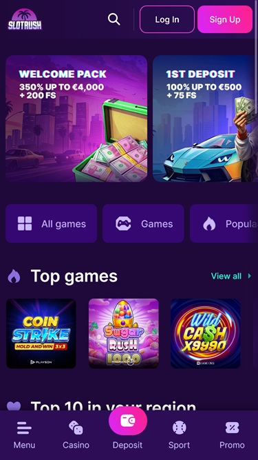 SlotRush 是一個線上賭場和體育博彩網站,專為來自加拿大、德國、芬蘭、奧地利和紐西蘭的玩家而設。在撰寫本文時,該品牌尚未獲得博彩牌照。