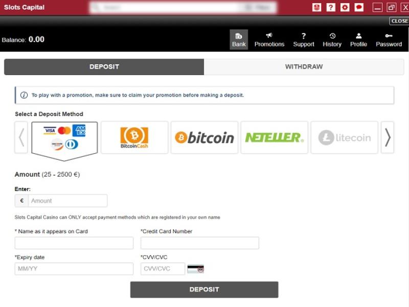 Banking銀⾏業務選項 的 Slots Capital Casino