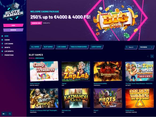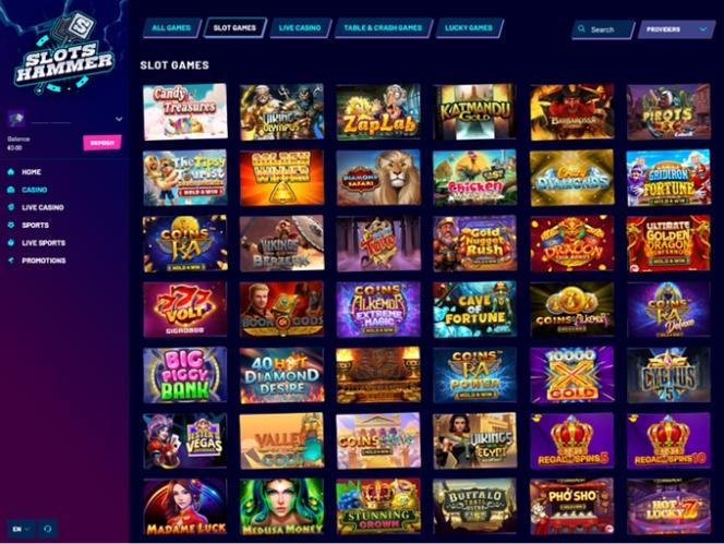 Slots Hammer 於 2025 年推出,是一個功能齊全的線上賭場和體育博彩網站,旨在為玩家打造一個龐大的博彩環境,其中包含數千款賭場遊戲,包括真錢老虎機、即時崩潰遊戲、桌面遊戲和真人荷官遊戲,同時不斷擴展其體育博彩部分和促銷計劃,提供豐厚的獎金和獎勵。