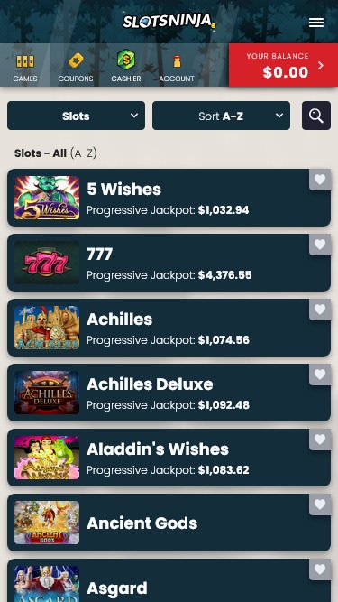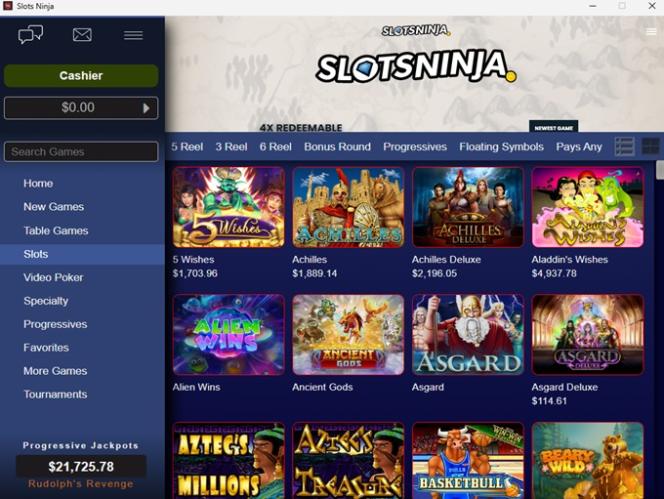 Slots Ninja 提供大量視訊老虎機遊戲。對於一家在賭場名稱中加上「老虎機」的線上賭場營運商來說,這絕對是物超所值。