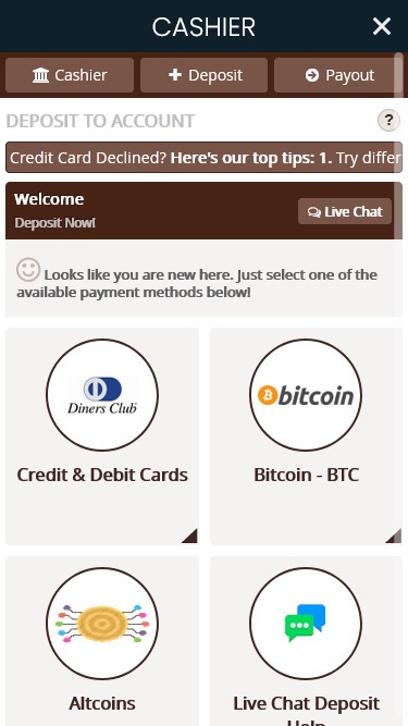 這家美國友善的線上賭場為玩家提供多種存款和提款支付方式。玩家可以使用多種加密貨幣銀行方式,以及更標準的支付方式,例如流行的電子錢包和支付卡。