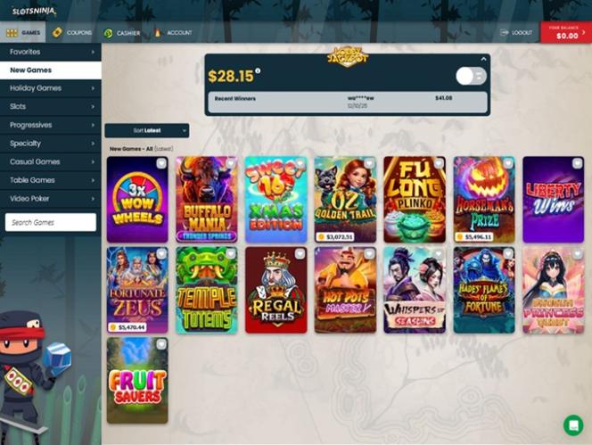 首先,我們要指出的是,Slots Ninja 絕非「只提供老虎機」的線上賭場。造訪該網站的玩家將有機會探索多個引人入勝的類別,包括:新遊戲、累積獎金、老虎機、特色遊戲、桌面遊戲和視訊撲克。在撰寫本文時,唯一缺少的類別是真人荷官賭場部分。