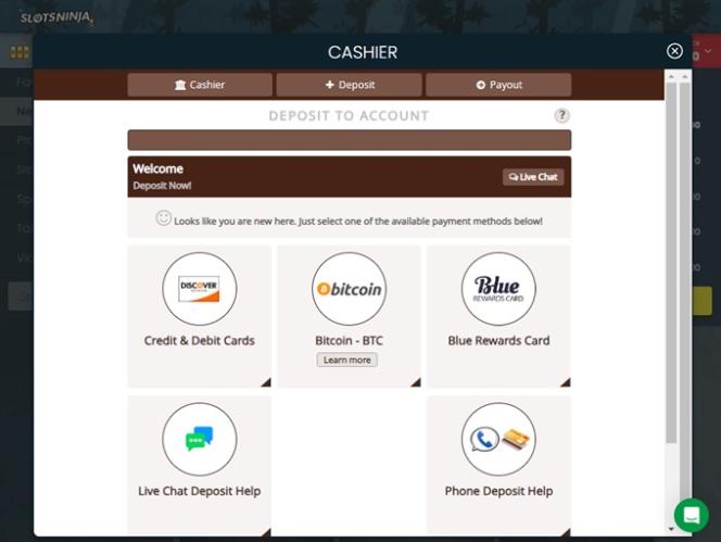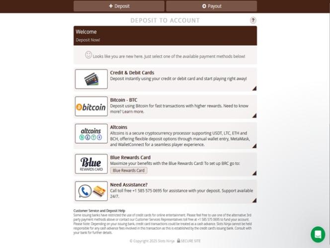 Banking銀⾏業務選項 的 Slots Ninja Casino