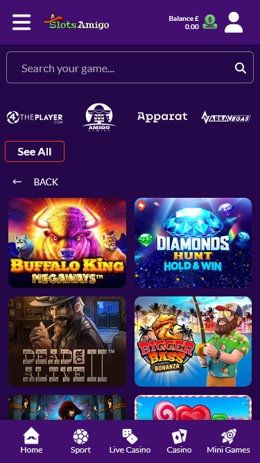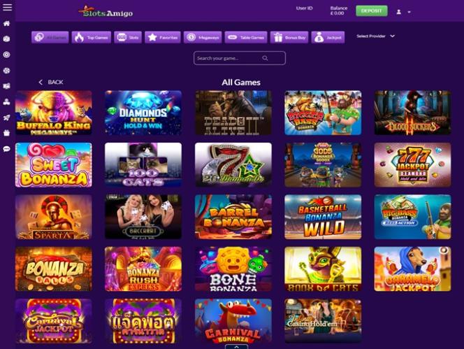 正如您所料,該品牌最大的吸引力在於其豐富多樣的線上老虎機遊戲組合。如果您正在尋找能夠提供數千款涵蓋眾多類別、風格和機制的精彩老虎機遊戲的線上賭場,SlotsAmigo 是您的最佳選擇。