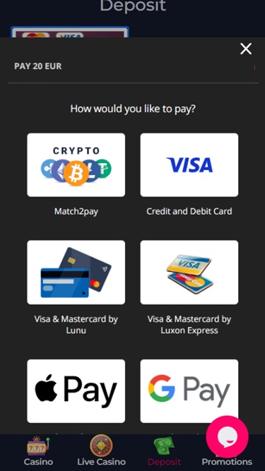 如果您需要客服團隊的協助來解決此問題或其他任何問題或疑問,賭場工作人員將全天候透過線上聊天和電子郵件為您提供協助。儘管不提供電話支持,這被一些賭場玩家視為缺點,但我們可以確認,透過即時聊天選項可以及時獲得專業幫助,這有效地彌補了熱線電話的不足。