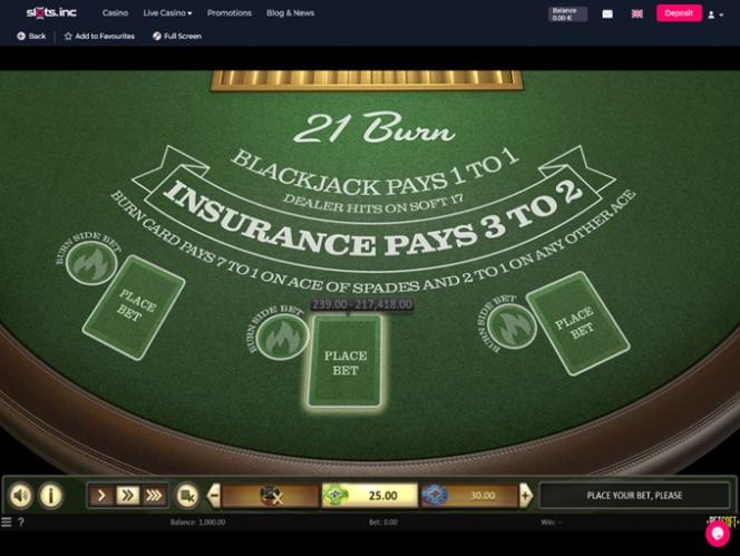 Slots.inc Casino Blackjack (Net Entertainment)展開