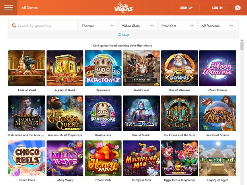Slotty Vegas 賭場提供數百款視訊和經典老虎機遊戲。遊戲涵蓋獨特遊戲和授權遊戲,例如侏羅紀公園、科學怪人、古墓奇兵等等。此外,還提供多個累積獎金,隨時都有數百萬美元的獎金。此外,還有多款行動老虎機遊戲,您可以使用智慧型手機和平板電腦暢玩。