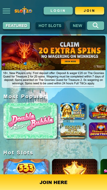 Slotzo 是一個由 Jupiter Gaming Limited 擁有和經營的線上博彩網站,專注於歐洲博彩市場。賭場設計精美有趣,並提供眾多功能,如果您正在尋找新的線上賭場,它絕對是一個值得考慮的選擇。