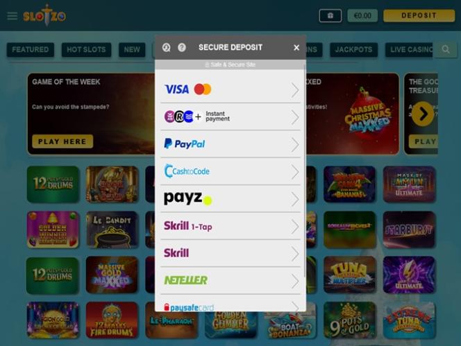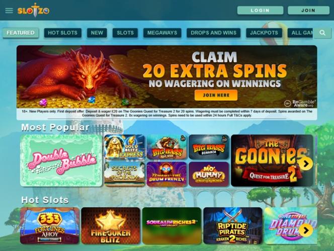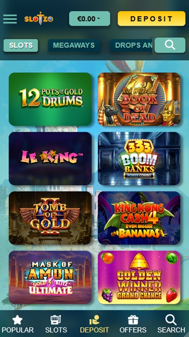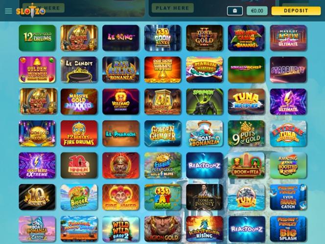 Slotzo Casino 由 Amaya, Microgaming, Net Entertainment, BetSoft, 1x2gaming, Amatic Industries, Barcrest, Big Time Gaming, Evolution Gaming, EYECON, Ezugi, iSoftBet, lightningboxgames, Oryx, Play'n GO, playson, Quickspin, Yggdrasil, Wazdan, Realistic Games, Booming Games, Stakelogic, Pragmatic Play, GAMING1, Red Tiger Gaming, Spinomenal, Red Rake Gaming, Skillzzgaming, Fantasma Games, SYNOT Games, Skywind, Triple Edge Studios, Northern Lights Gaming, Stormcraft Studios, All41 Studios, Gluck Games, Gameburger Studios, Pulse 8 Studios, Shuffle Master, SpinPlay Games, Real Dealer Studios, Games Global, Wizard Games, Ainsworth, Bally Technologies, bluberi, Blueprint Gaming, Endemol Games, NextGen, Pariplay, Tom Horn Gaming, WMS, Inspired Gaming, Gaming Realms, SG Interactive, Gamomat, Red7Mobile, Scientific Games, Reel Time Gaming, Authentic Gaming, betiXon, Bally Wulff, Iron Dog Studio, Old Skool Studios, Foxium, Betdigital, Just For The Win, Reflex Gaming, PearFiction Studios, Wild Streak Gaming, Slingshot Studios, Fortune Factory Studios, RubyPlay, 4ThePlayer, AvatarUX, Gamevy, High 5 Games, ReelPlay, Alchemy Gaming, Snowborn Games, Hacksaw Gaming, Bang Bang Games, Slotmill, Peter And Sons, Lucksome Gaming, Area Vegas, Leap Gaming, Wishbone Games, Spribe, INO Games, Nailed It! Games, Atomic Slot Lab, Neko Games, Reel Kingdom, Oros Gaming, Indigo Magic and Light & Wonder提供支持,其網頁平台可透過您的網頁瀏覽器載入。網站設計精良,易於瀏覽。此外,它還內建了行動相容性,方便您在智慧型手機或平板電腦上投注。