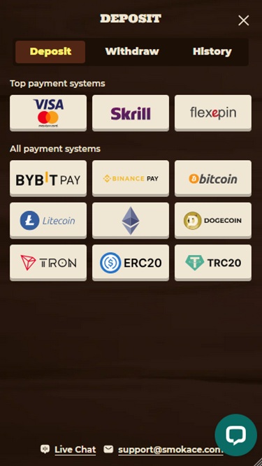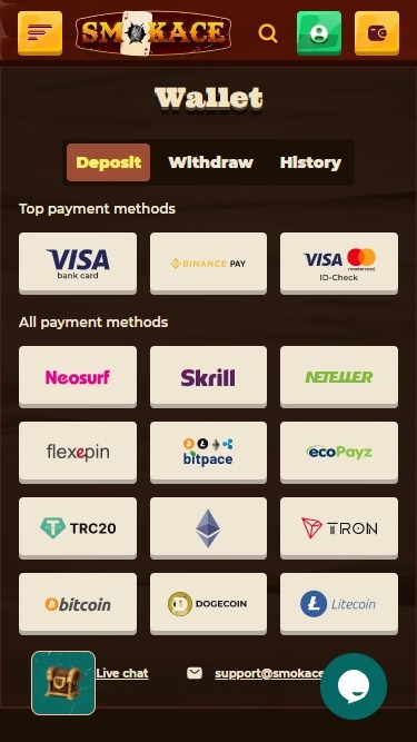 在 SmokeAce 賭場,您可以聯繫客服,對您的帳戶進行限制,這從長遠來看非常有用。如果您覺得自己的賭博行為失控了,我們建議您使用這些功能。