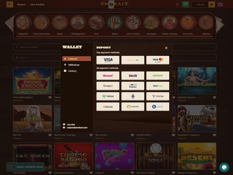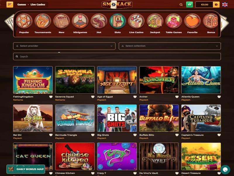 如果您是狂野西部風格的愛好者,那麼您一定會喜歡設計師對 SmokeAce 賭場外觀的巧妙詮釋。它採用狂野西部主題,但又不會過度刺激使用者。介面簡潔,充滿樂趣。