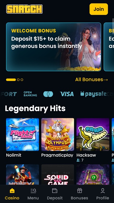 該營運商還為新玩家和常規 Snatch Casino 玩家提供誘人的線上賭場獎金和促銷優惠,以獎勵玩家的忠誠度。
