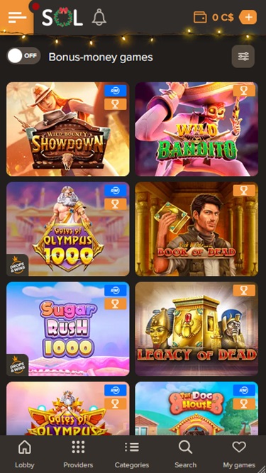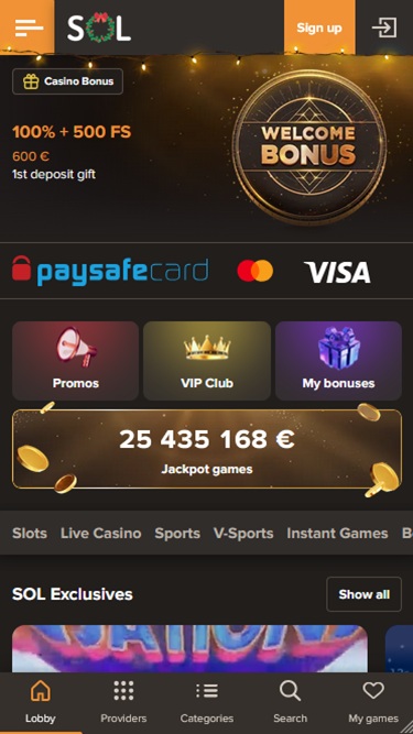 在獎金和促銷活動方面,Sol 賭場的表現與大多數其他賭場一樣令人印象深刻。它不僅為賭場新手準備了豐厚的獎金,還為老玩家提供了一些優惠。