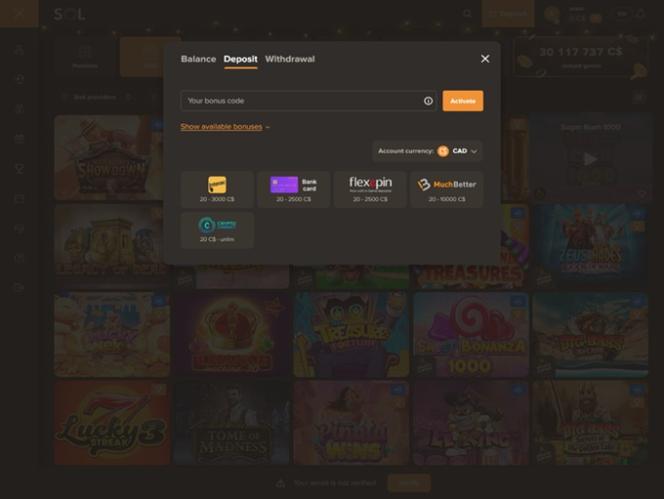 Sol 的帳戶註冊是一個非常簡單的過程,玩家幾乎可以立即進入賭場大廳。