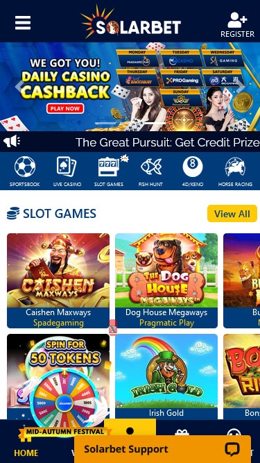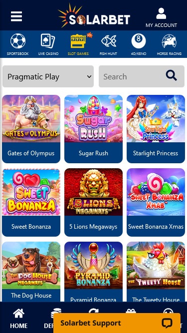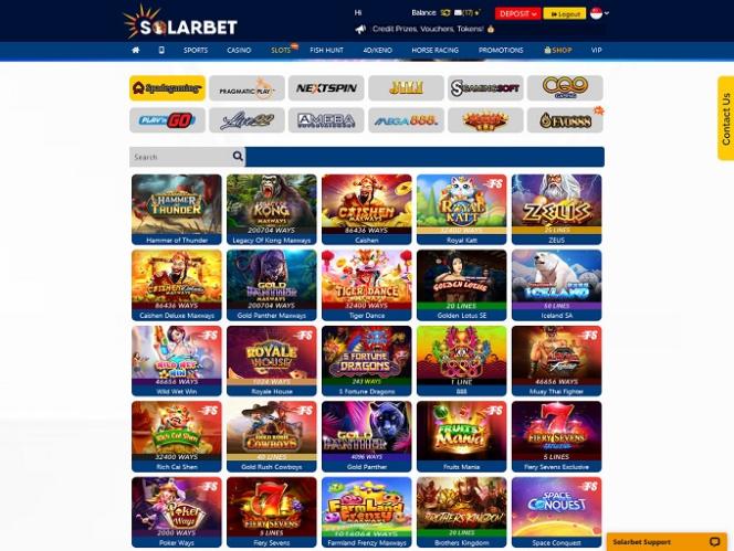 Solarbet Casino 提供豐富的線上老虎機遊戲。其中最受歡迎的遊戲包括《Gates of Olympus》、《Sweet Bonanza》、《Hammer of Thunder》、《Monkey Jump》、《Donki Kong》、《The Dog House Megaways》和《Caishen》 。當然,還有更多單臂強盜機可供選擇。