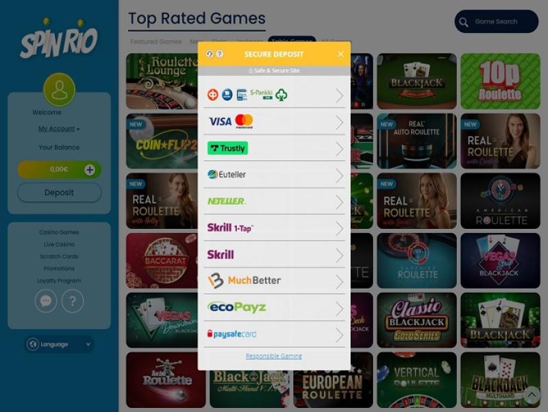 Banking銀⾏業務選項 的 Spin Rio Casino