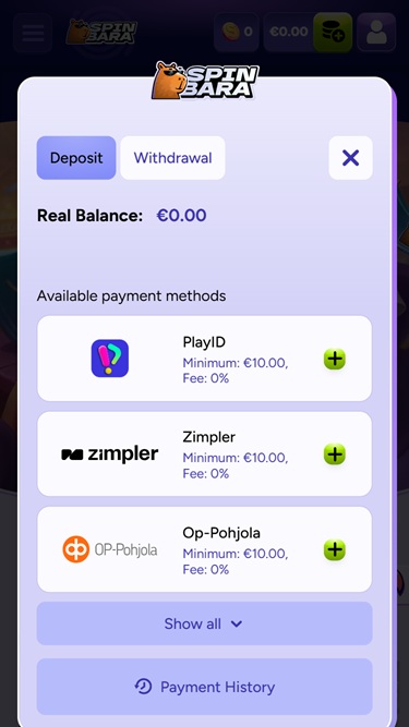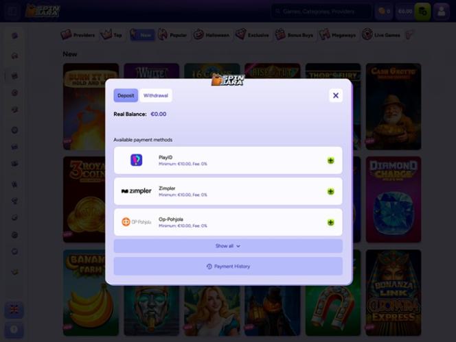 還要注意的是,Spinbara Casino 歡迎來自奧地利、加拿大、瑞士、德國、芬蘭、挪威、紐西蘭的玩家。如果您剛好來自這些地區,您將體驗到由一些知名 iGaming 行業公司提供的豐富遊戲庫,以及精彩紛呈的促銷活動,總有一款適合您。
