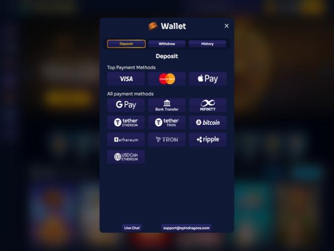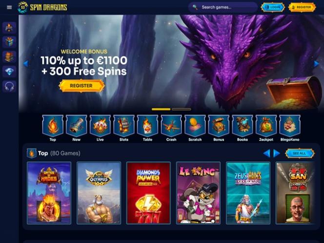 SpinDragons 由 Microgaming, Net Entertainment, Playtech, BetSoft, 1x2gaming, Amatic Industries, Big Time Gaming, Evolution Gaming, EYECON, Ezugi, Habanero Systems, Novomatic, Play'n GO, playson, Quickspin, Relax Gaming, Rival, Thunderkick, Vivo Gaming, Endorphina, Wazdan, Booming Games, Stakelogic, Pragmatic Play, Nolimit City, Felt Gaming, Red Tiger Gaming, Spinomenal, Felix Gaming, Red Rake Gaming, Fugaso, Belatra Games, Fantasma Games, Sigma Gaming, Skywind, Triple Edge Studios, BGAMING, Northern Lights Gaming, Evoplay, Stormcraft Studios, Switch Studios, Pocket Games Soft, Bulletproof Games, All41 Studios, Gluck Games, Gameburger Studios, Pulse 8 Studios, Slot Factory, Neon Valley Studios, Spearhead Studios, HungryBear Gaming, SmartSoft Gaming, PureRNG, Buck Stakes Entertainment, Creedroomz, Eurasian Gaming, Games Global, Amusnet Interactive, Ash Gaming, Blueprint Gaming, EveryMatrix, Leander Games, Just For The Win, Reflex Gaming, Storm Gaming Technology, PearFiction Studios, Apollo Games, Fortune Factory Studios, Jade Rabbit Gaming, RubyPlay, 4ThePlayer, AvatarUX, Gamevy, Crazy Tooth Studio, YoloPlay, ReelPlay, Alchemy Gaming, Rarestone Gaming, Vibra Gaming, BB Games, Black Pudding Games, Boomerang Studios, Hacksaw Gaming, Max Win Gaming, Gold Coin Studios, Bang Bang Games, Triple Cherry, Peter And Sons, Aurum Signature Studios, Armadillo Studios, FlipLuck, Aviatrix, 3 Oaks Gaming, Spribe, Circular Arrow, Gaming Corps, HammerTime Games, Four Leaf Gaming, Nailed It! Games, Reel Kingdom, Kitsune Studios, Octoplay and Red Papaya提供技術支援。鑑於賭場的遊戲庫如此龐大,擁有許多不同的遊戲供應商也就不足為奇了。老虎機遊戲種類之豐富令人印象深刻。無論您喜歡經典的老式老虎機、Book of Slots 系列,還是機制新穎的現代老虎機,您都能輕鬆找到幾款心儀之選。