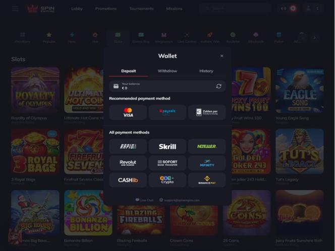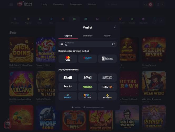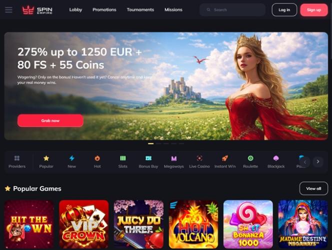 SpinEmpire是一家受庫拉索政府監管並持有其牌照的線上賭場。該iGaming品牌主要針對加拿大、德國和奧地利的賭場玩家。
