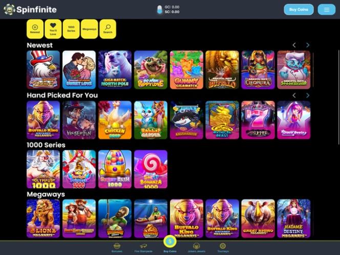 由於線上老虎機幾乎是您在 Spinfinite 賭場體驗到的唯一賭場式娛樂形式,因此無論您喜歡哪種類型和類別的老虎機,您自然都會擁有豐富的選擇。以下是我們推薦的一些最受歡迎的老虎機: