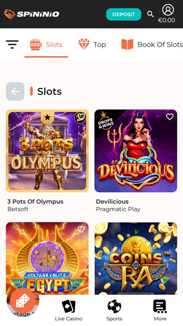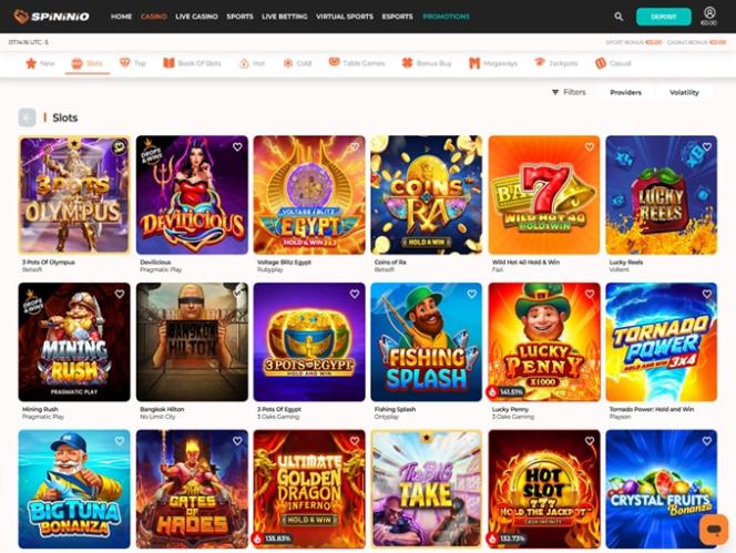 擁有龐大的遊戲庫是賭場最重要的功能之一。 Spinion 團隊顯然明白這一點,他們投入了大量精力打造遊戲庫,該遊戲庫由 100 多個軟體工作室提供支援 - Net Entertainment, BetSoft, 1x2gaming, Big Time Gaming, ELK Studios, Evolution Gaming, Ezugi, Habanero Systems, Novomatic, Oryx, Play'n GO, playson, Quickspin, Thunderkick, Vivo Gaming, Yggdrasil, Endorphina, GameArt, Betgames, Booming Games, Stakelogic, Pragmatic Play, Nolimit City, Red Tiger Gaming, LuckyStreak, Spinomenal, Felix Gaming, Inbet Games, Fugaso, Kalamba, Spin Games, Skywind, BGAMING, Fazi, Evoplay, OneTouch, Pocket Games Soft, Bulletproof Games, Gluck Games, Mascot Gaming, Slot Factory, Swintt, HungryBear Gaming, SmartSoft Gaming, Blue Guru Games, Elysium Studios, Eurasian Gaming, bluberi, Blueprint Gaming, Greentube, Tom Horn Gaming, Gamomat, Reel Time Gaming, BF Games, Bally Wulff, Iron Dog Studio, Reflex Gaming, Wild Streak Gaming, Golden Hero, Jade Rabbit Gaming, RubyPlay, 4ThePlayer, AvatarUX, Gamevy, ReelPlay, Japan Technicals Games, SlotVision, BB Games, Black Pudding Games, Boomerang Studios, Hacksaw Gaming, Max Win Gaming, Bang Bang Games, Gamzix, Arcadem, SilverBack Gaming, Peter And Sons, Onlyplay, Lucksome Gaming, Leap Gaming, Aviatrix, Kiron, 3 Oaks Gaming, Amigo Gaming, Spribe, Print Studios, Gaming Corps, Four Leaf Gaming, Atomic Slot Lab, Reel Kingdom, Givme Games, Indigo Magic, VoltEnt, Kitsune Studios, InOut Games, PlayAce, Turbo Games and ESA Gaming 。