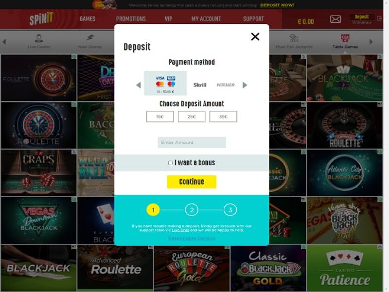 Spinit 的銀行系統相當完善,賭場提供電子錢包、信用卡和銀行轉帳等存款和提款服務。電子錢包交易可立即支付,而其他方式則需要多花幾天時間。這並非賭場的問題,而是支付方式的問題。