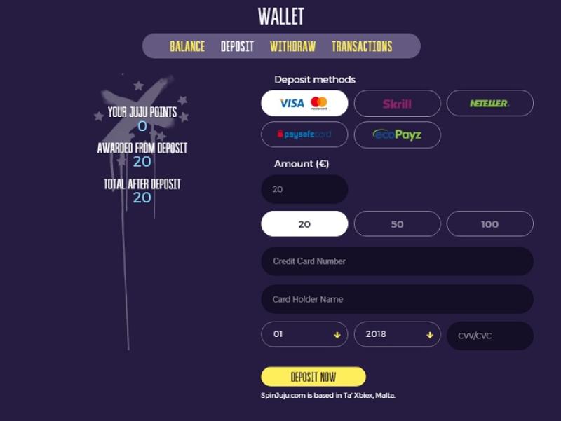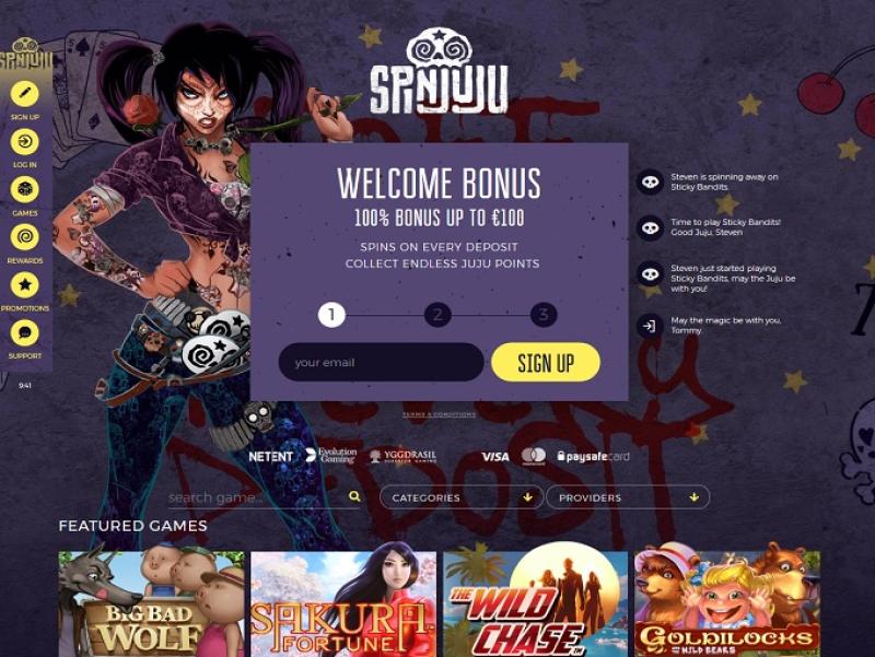 Spin JuJu 是一個線上博彩網站,由馬耳他經營的 MT SecureTrade Limited 於 2016 年創立。該賭場是一個僅限行動裝置的線上博彩網站,這意味著您需要使用手機或平板電腦進行遊戲,並且它面向受監管的遊戲市場。該賭場提供來自頂級開發商的豐富遊戲,並提供豐厚的獎金和合理的賠償時間,所有這些都使 Spin JuJu 成為一個優秀的行動博彩網站。
