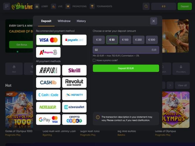 除了會員計畫和VIP俱樂部,Spinline賭場還提供令人興奮的促銷和獎金,供玩家定期享受。新用戶將獲得豐厚的註冊禮包,現有玩家則可以享受每日獎金和其他促銷活動,包括網路活動和內部老虎機錦標賽。