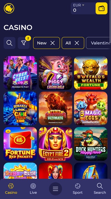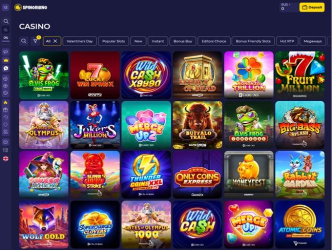 因此,大多數現代賭場品牌都非常重視擴展其遊戲庫,Spinorhino 也不例外。在這裡,您可以暢玩海量遊戲,這要歸功於賭場成功獲得了 80 多家獨特軟體開發商的許可 Net Entertainment, BetSoft, Big Time Gaming, Evolution Gaming, Ezugi, Play'n GO, playson, Thunderkick, Yggdrasil, Endorphina, Wazdan, GameArt, Booming Games, Pragmatic Play, Nolimit City, Red Tiger Gaming, Spinomenal, Felix Gaming, Fugaso, Belatra Games, Fantasma Games, Platipus Gaming, Nucleus Gaming, Spadegaming, BGAMING, Fazi, Evoplay, Pocket Games Soft, Bulletproof Games, Mascot Gaming, NetGame Entertainment, Swintt, TrueLab Games, Mancala Gaming, HungryBear Gaming, SmartSoft Gaming, KA Gaming, Reevo, Blueprint Gaming, CT Interactive, Tom Horn Gaming, Mr Slotty, Reel Time Gaming, BF Games, Reflex Gaming, Wild Streak Gaming, 4ThePlayer, AvatarUX, Groove Gaming, SlotVision, Hacksaw Gaming, Max Win Gaming, Bang Bang Games, Gamzix, Peter And Sons, Absolute Live Gaming, Charismatic, Onlyplay, FastSpin, Lucksome Gaming, Gamebeat, Aviatrix, Kiron, TaDa Gaming, 3 Oaks Gaming, Spribe, 1spin4win, Gaming Corps, BetSolutions, Reel Kingdom, Popiplay, ICONIC21, Formula Spin, Clawbuster, Galaxsys, NowNow Gaming, VoltEnt, InOut Games, Turbo Games and Penguin King 。