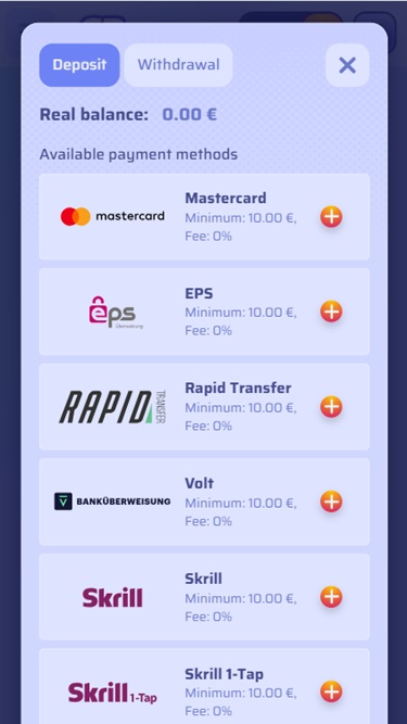 至於支付方式,玩家確實有大量的存款和提款選擇。傳統的法定貨幣支付方式包括Visa 、 Mastercard 、 Skrill 、 Neteller 、 Paysafecard 、 Jeton 、 Payz 、 Neosurf等,而替代支付方式包括比特幣、以太坊、萊特幣、 Tron 、 Tether 、 USD Coin和Solana 。