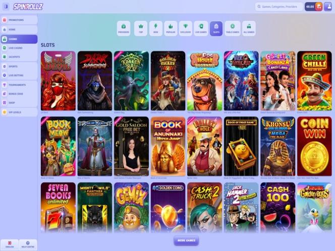即使擁有出色的視覺設計和直覺的使用者介面,我們仍然需要關注Spinrollz Casino為玩家提供了什麼樣的遊戲選擇。總而言之,這在任何平台上都是最重要的屬性,因為擁有豐富的遊戲庫可以確保用戶長時間停留。