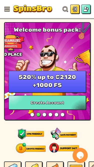 SpinsBro 的網站外觀賞心悅目。它沒有像許多線上賭場那樣千篇一律的標準化介面,而是卡通風格,非常有趣。