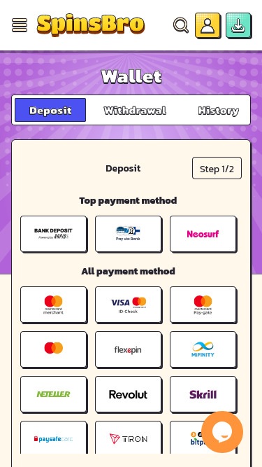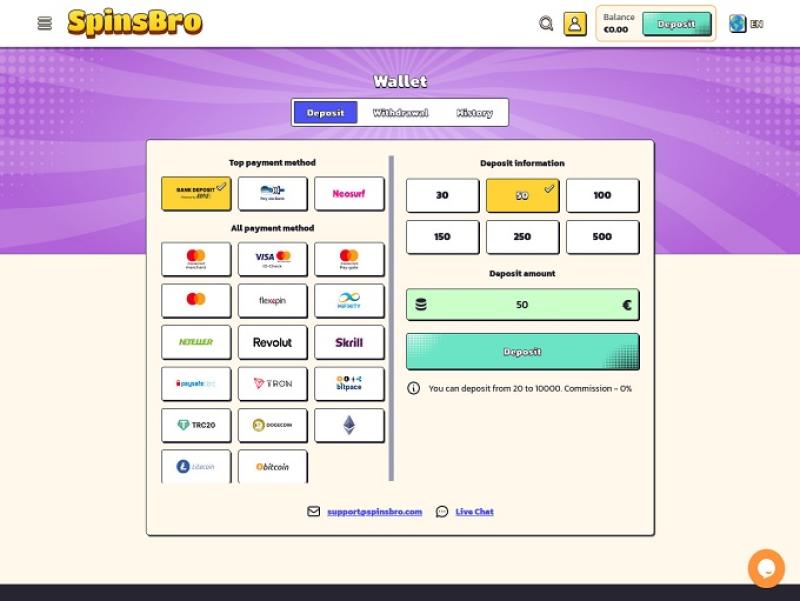 Banking銀⾏業務選項 的 SpinsBro Casino